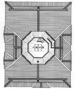 5階は、対辺間距離5間の正八角形平面です。